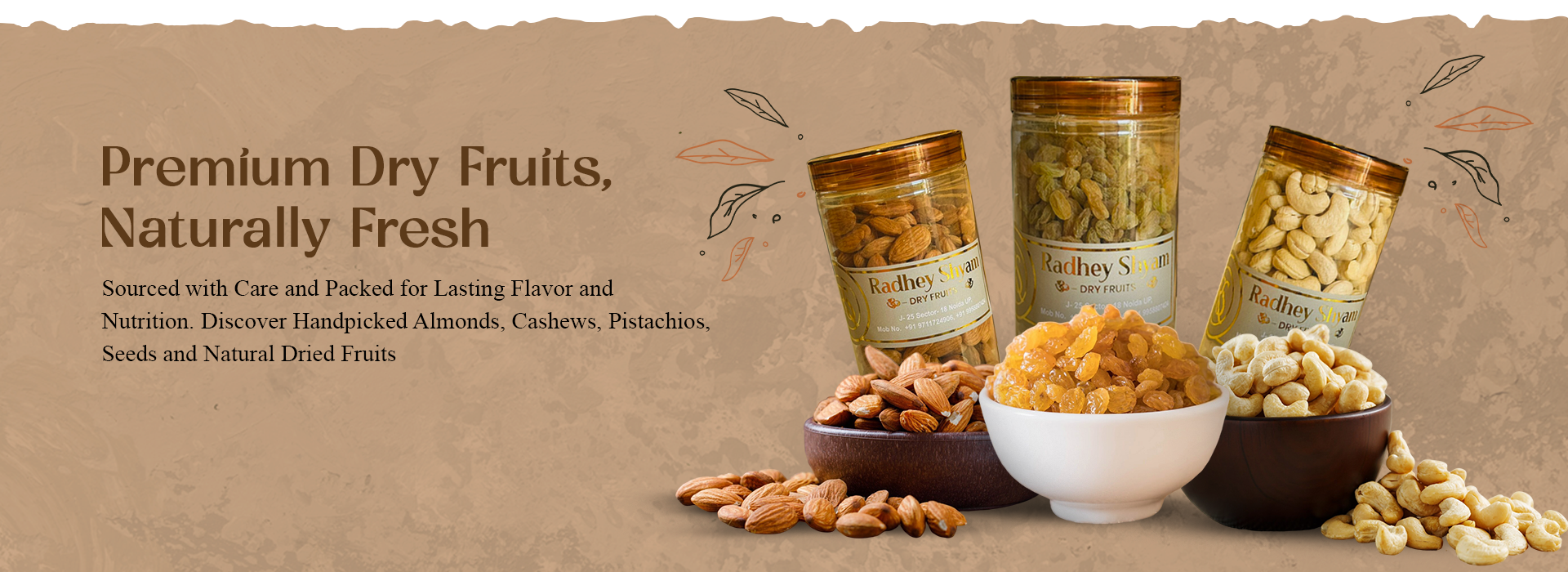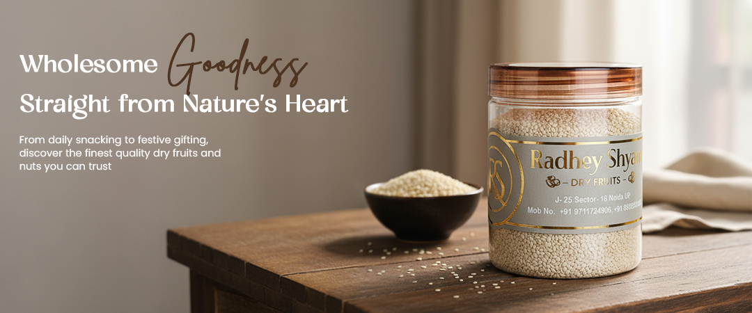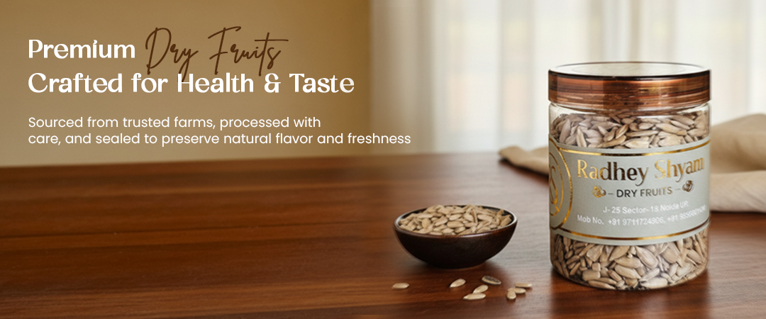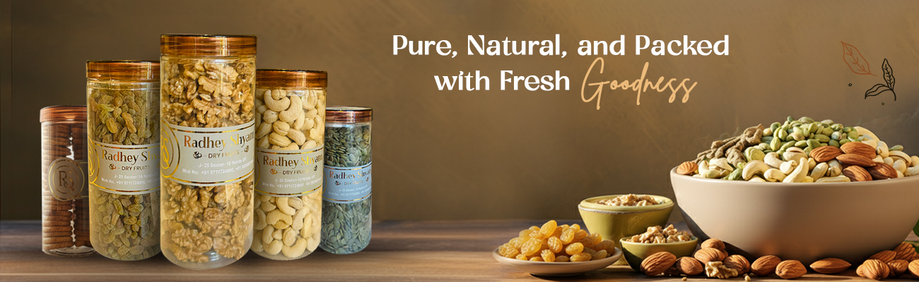 Founded with a passion for purity, Radhey Shyam Dryfruits delivers the freshest, highest-quality almonds, cashews, pistachios, seeds, and natural dried fruits straight to your home. We blend traditional sourcing with modern hygiene and packing standards to preserve flavor and nutrition in every bite.
