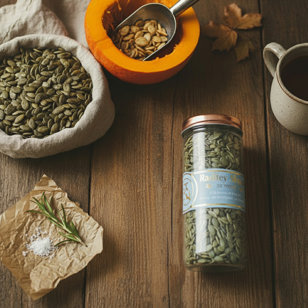 Crunchy, nutrient dense pumpkin seeds packed fresh in a premium airtight jar. A wholesome superfood snack that adds protein, crunch, and flavor to salads, smoothies, and everyday munching.