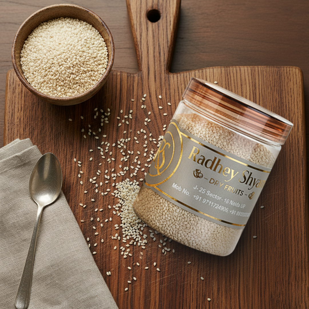 At Radhey Shyam Dryfruits, we select premium grade white sesame seeds that look as pure as they taste. With consistent size, color, and flavor in every jar, you can confidently use our til in daily cooking, festive recipes, and gourmet experiments knowing your family is getting quality they can trust.